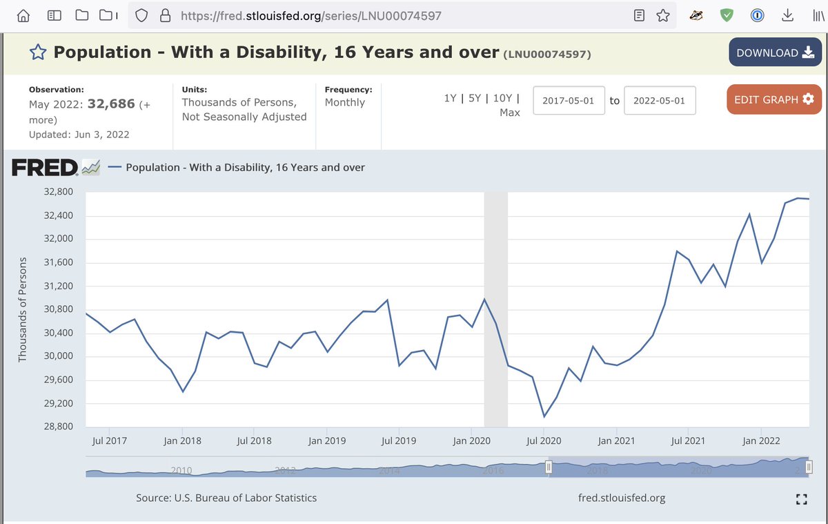 > Persons 16+ with a disability increased from 30M --> 32.7M. #Covid#Covid19#Corona#Coronavirus