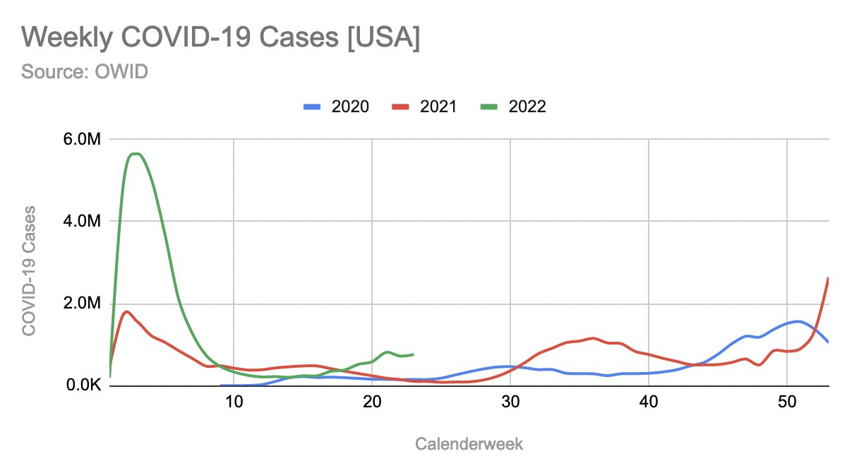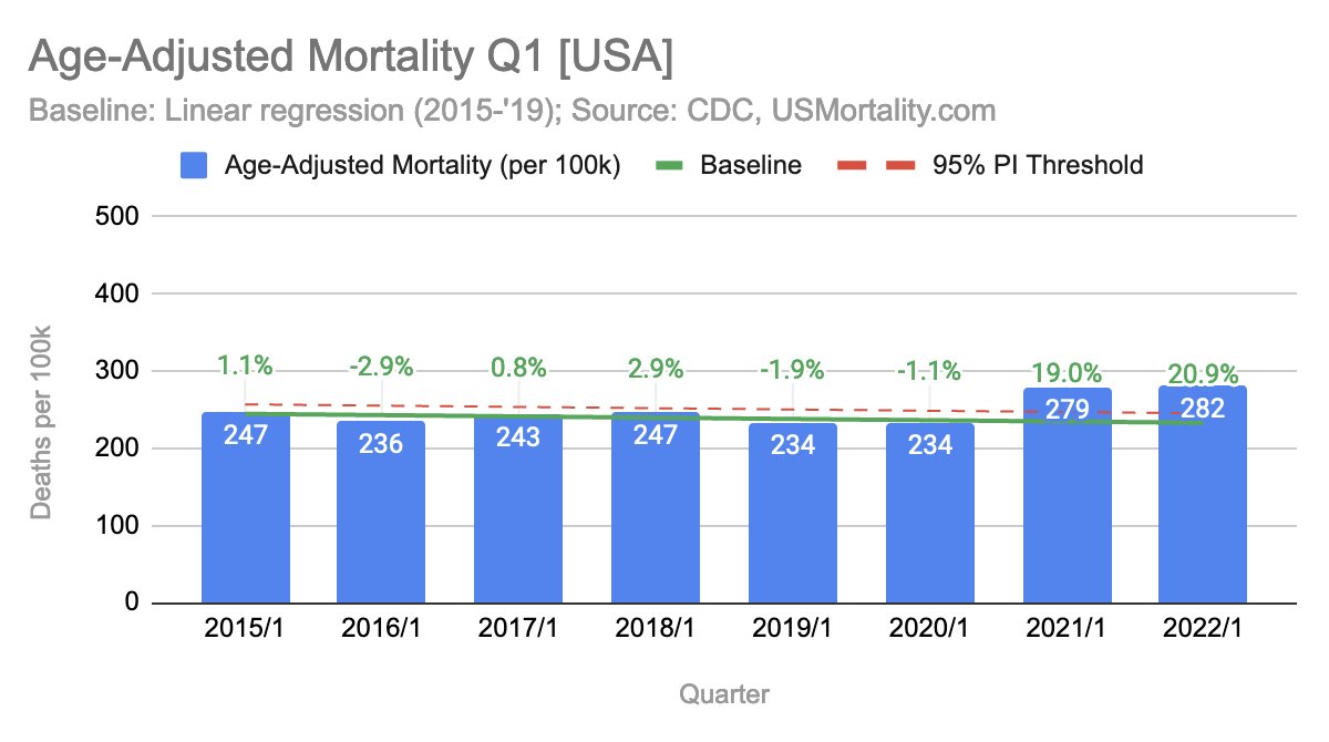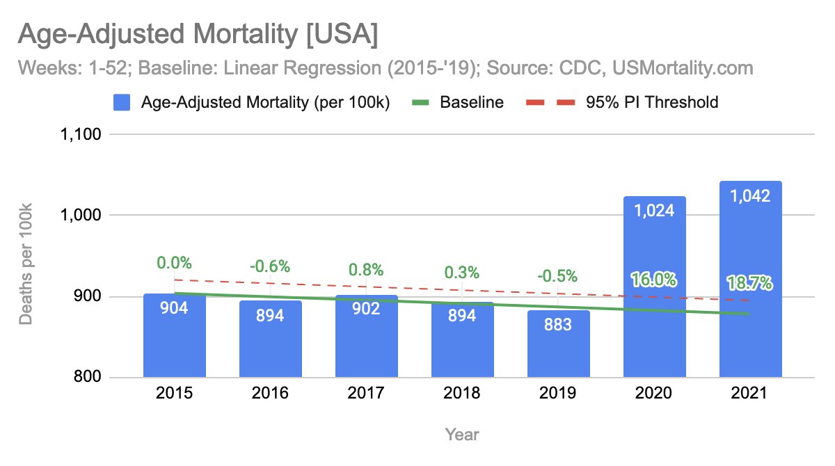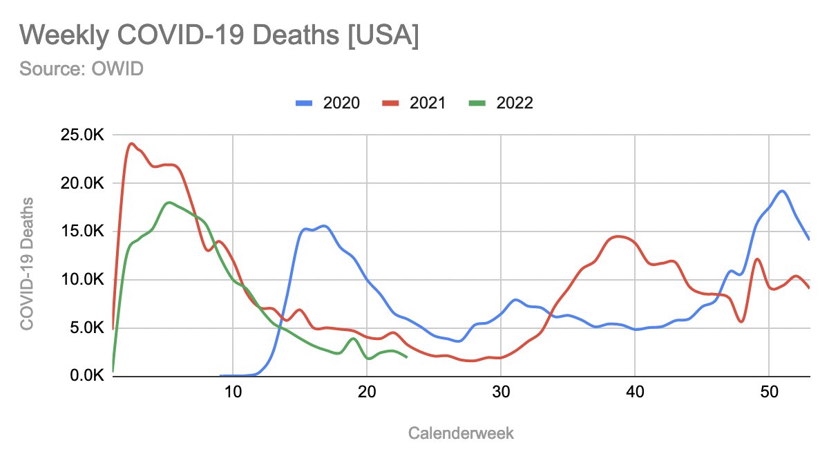 > Sharp increase from trend occurs early 2021, when vaccinations started.