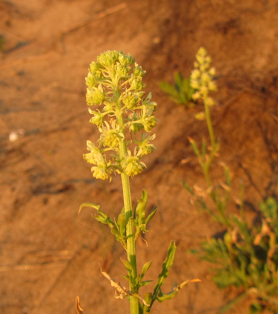 Nearby are the acidic-yellow spikes of Wild Mignonette.