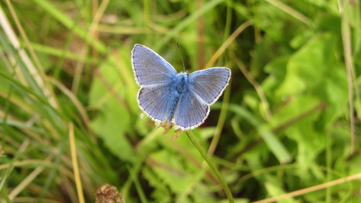 Just before Beadnell is a meadow packed with flowers and butterflies: purple clover, yellow buttercups, white frothy cow parsley, yellow rattle, pink orchids, red campion, purple thistles, indigo vetch, and eggs and bacon birds-foot trefoil.