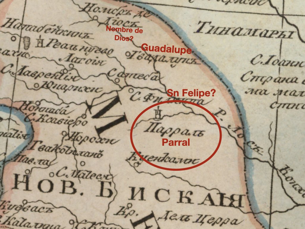 Identifico pocas ciudades del norte, entre ellas, una de las más llamativas es Parral (hoy en Chihuahua, entonces en Nueva Vizcaya).