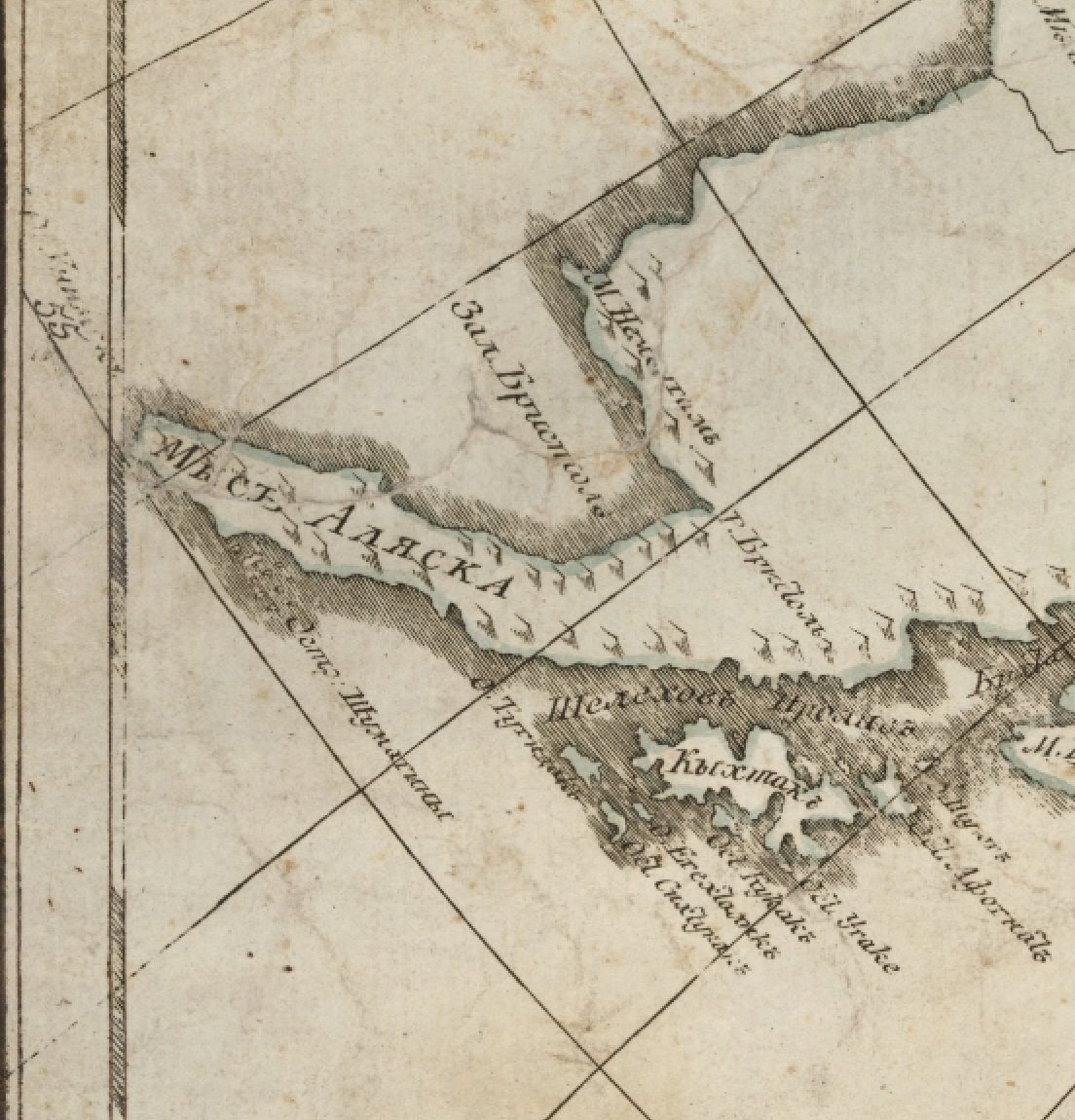 En el extremo norte de América del Norte, vemos que que #Alaska ya recibe el nombre con que hoy lo conocemos. Sin embargo, éste solo abarca la región más occidental del actual estado de Alaska e inicio de las islas Aleutianas.
