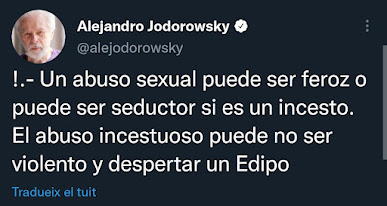 "Soy un gran devoto de la psicomagia y Jodorowsky" afirma Amela... un tío que durante años ha justificado el abuso sexual por medio esta pseudoterapia que se ha invitado (entre otras barbaridades).