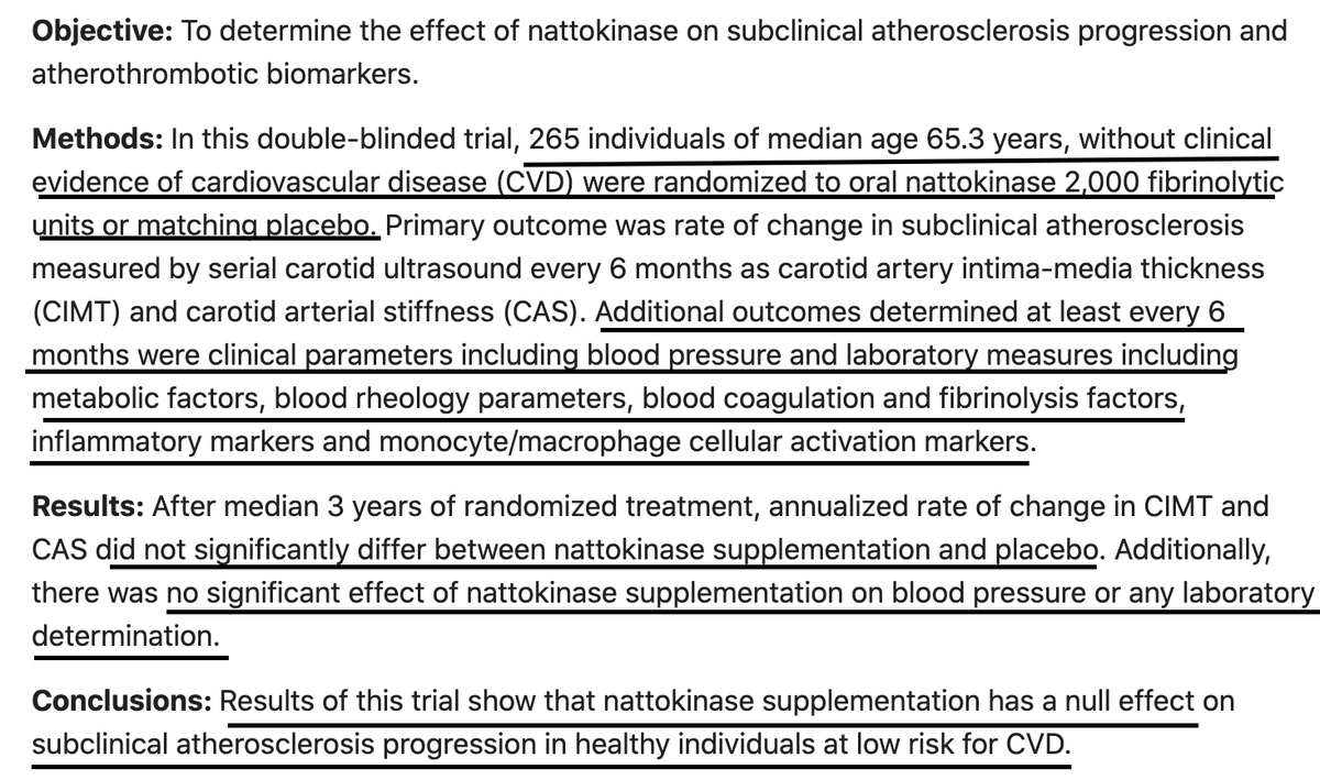 However, this larger RCT from 2021 concluded that after a median 3 yrs, daily 2000 FU NK showed no significant effect on blood coagulation and fibrinolysis factors, blood pressure or any other tested labs, & didn't decrease pubmed.ncbi.nlm.nih.gov/33843667/
