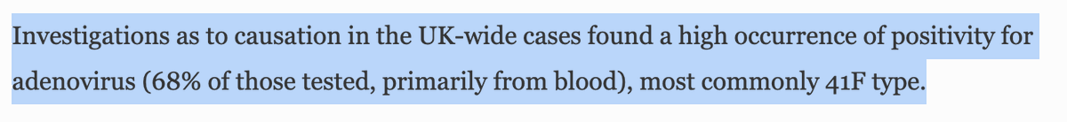 But still seems to bizarrely conclude that this must be adenovirus related. It says that 68% of UK samples had adenovirus in blood (*none* in liver)- and *not even all of these* were the same type of Adenovirus! The most common type was Adv 41 - *never* known to cause hepatitis.