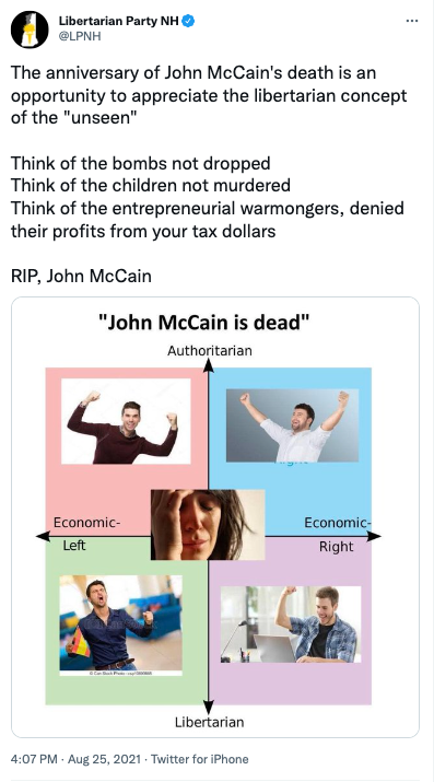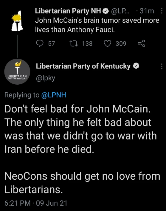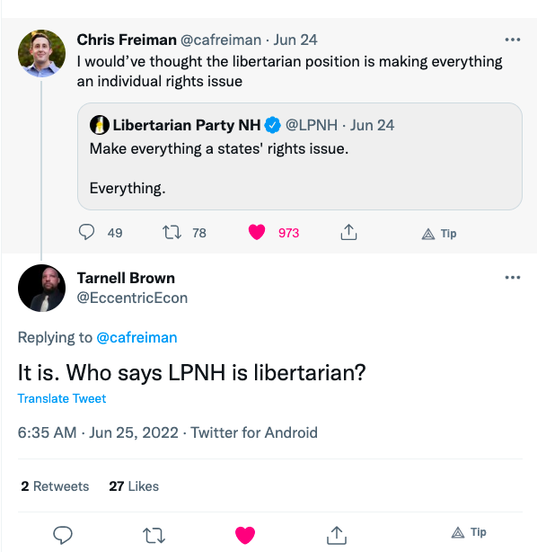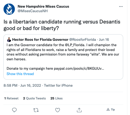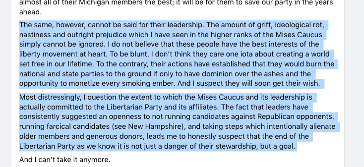 Their core messages seems to be: "Don't vote LP -- vote Trump or you're stupid (Advisory Board Member Watler Block), and if you liked our 1974 or 2021 platform, before we started racism-signalling, vote @USPirates instead " 👏👏