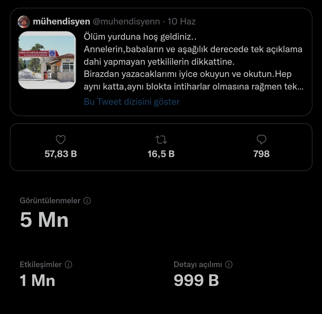 Eğer bir yurtta 40 günde 3 intihar olmuş ve tık yer yerinden oynamamışsa birleri konuşur.