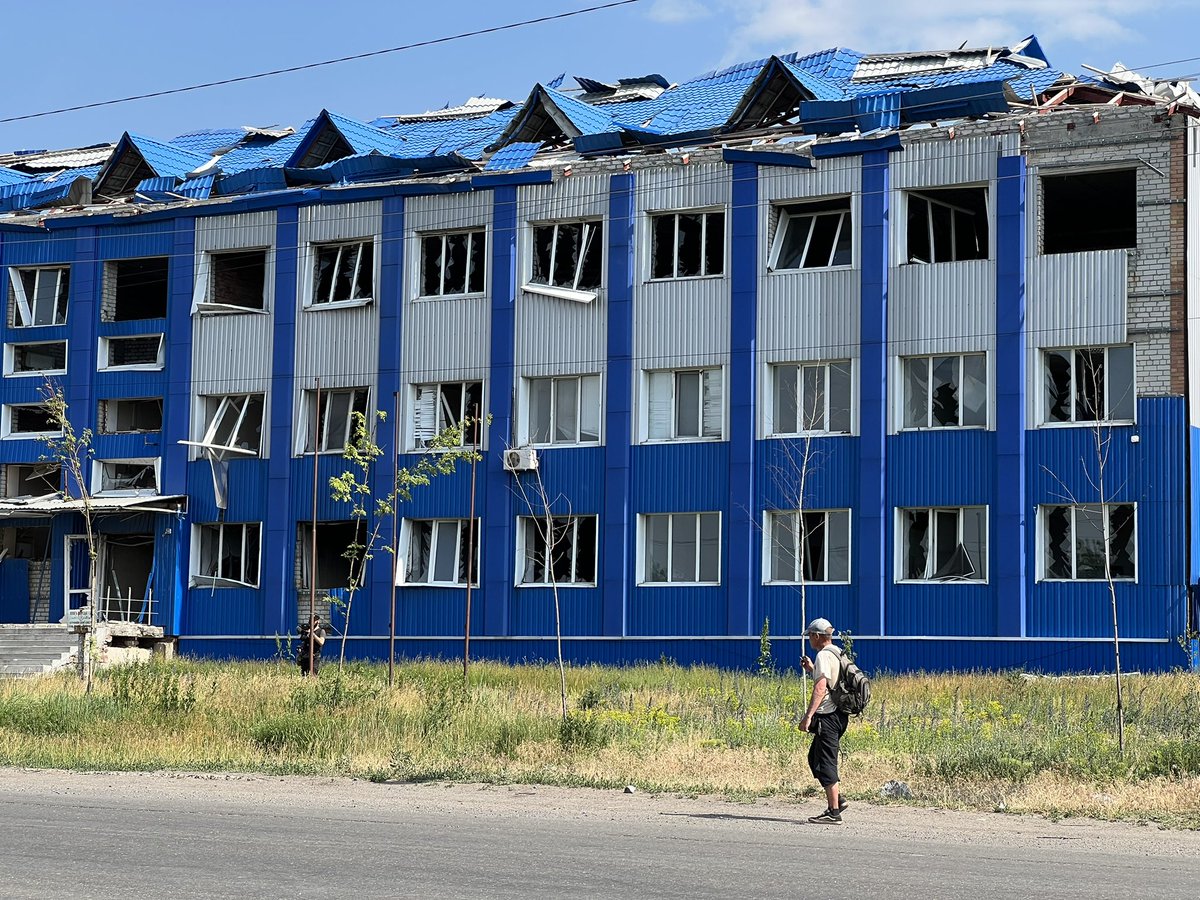 It's not safe here. You can see a school that was hit by a rocket, in the photo.