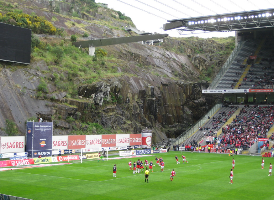 2. O estádio Municipal de Braga foi construído para a Euro 2004 e é possivelmente o campo de futebol mais raro da Europa. Sua capacidade é de 30.000 espectadores e existem apenas arquibancadas laterais. De um lado tem uma vista panorâmica da cidade e do outro um paredão de pedra.