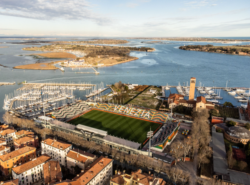 5. Estádio Pierluigi Penzo de Veneza: que estádio tem o calcio italiano! Entre águas e canais, ergue-se o antigo e antigo estádio da cidade. Datado de 1913, sua capacidade é de cerca de 13.000 espectadores. Uma verdadeira joia!
