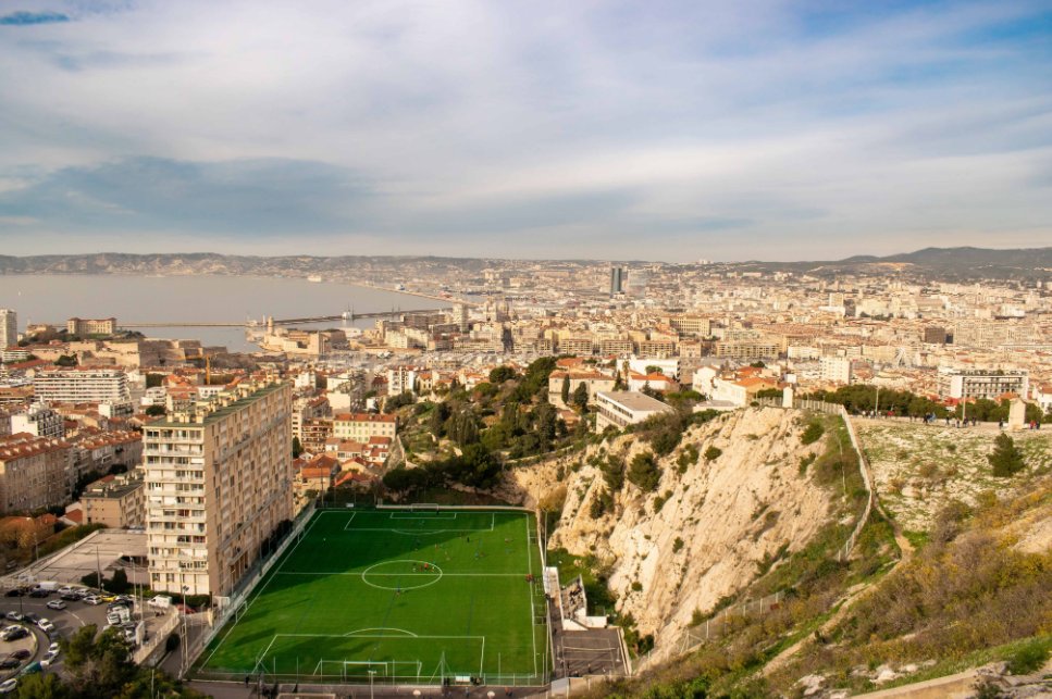 6. Stade Francis di Giovanni: é a sede da Union Sportive Marseille da França. Se você estiver procurando por arquibancadas, não há nenhuma. Só vai achar uma montanha de uma lado e um prédio do outro.