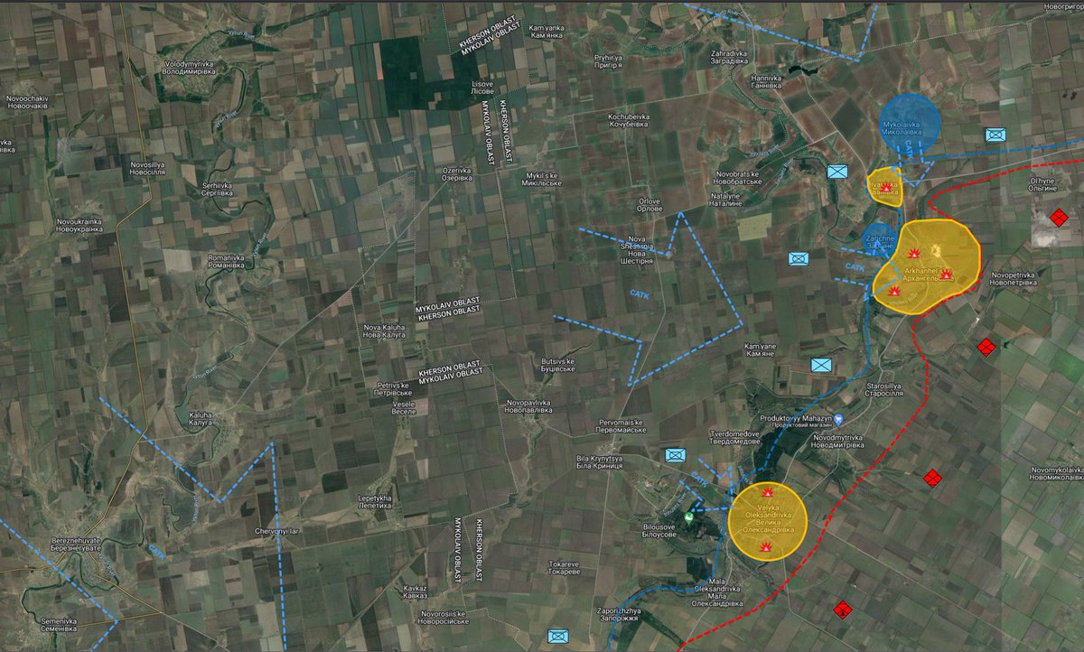 Ukrainian forces are attacking the towns of Davydiv Brid,Velyka Oleksandrivka,Bruskyns'ke,Ivanivka.
