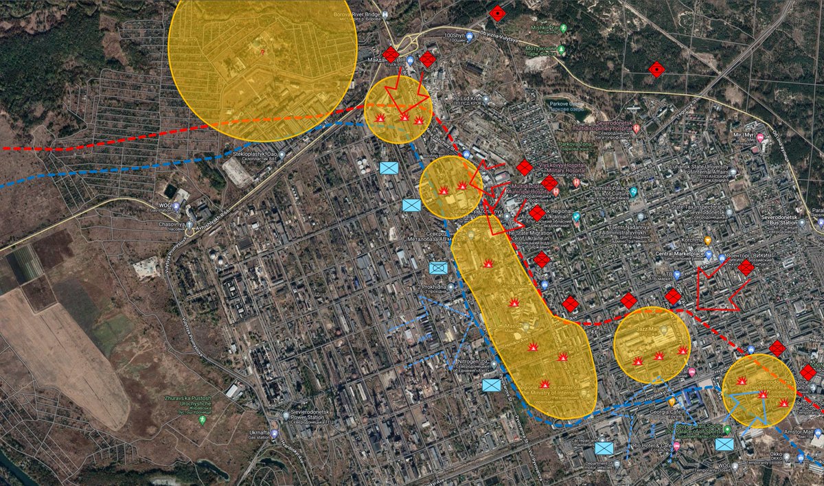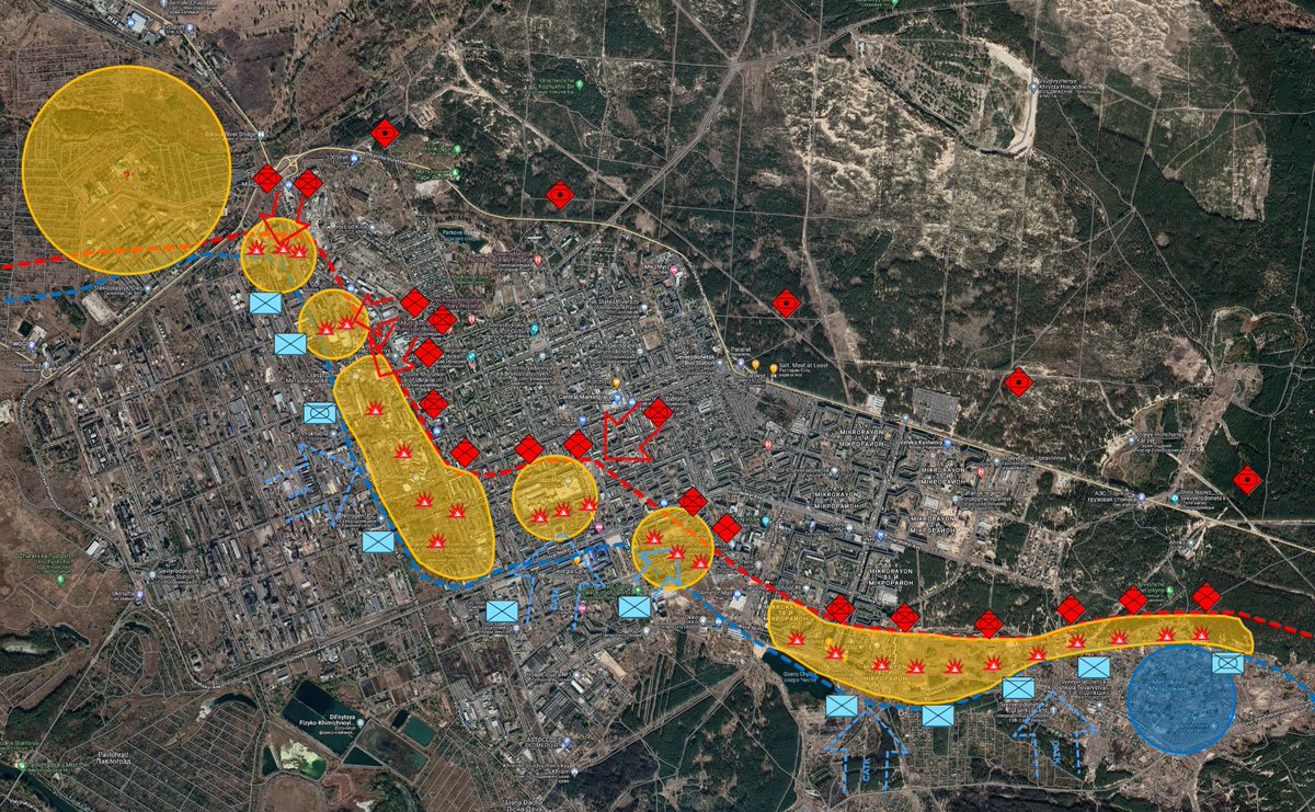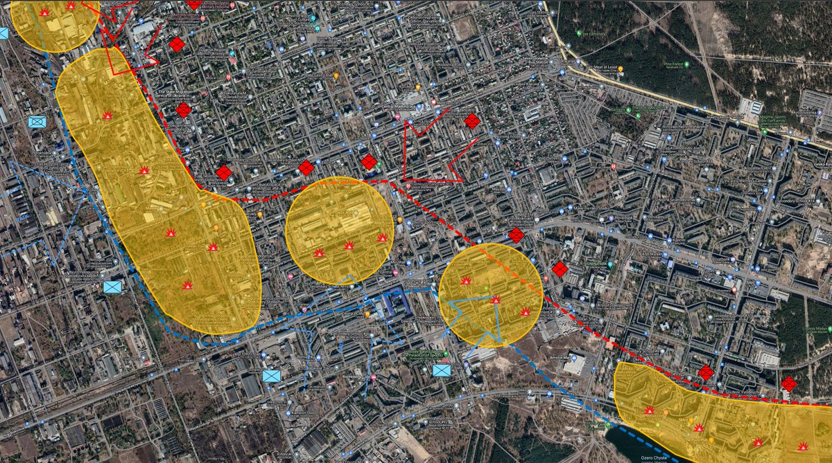 Russians are attacking the western industrial zone from the north and east sides. Heavy fighting continues around the Pyvovarova Street.