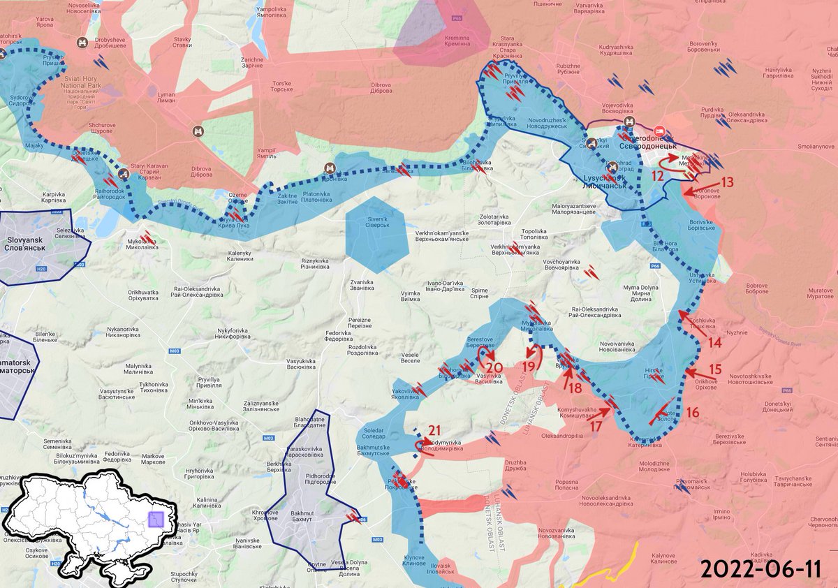 They are also pushing west from Orikhove, a town they captured on May 17th, but they made very little progress and reportedly still haven't left the outskirts of the town (15).