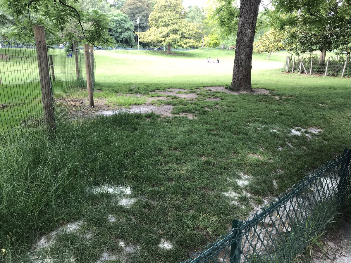 Les pelouses ont été ouvertes à tous, ce qui les a cramées. Parfois les jardiniers tentent de les ressusciter en les protégeant le temps qu’elles poussent. Avant/après