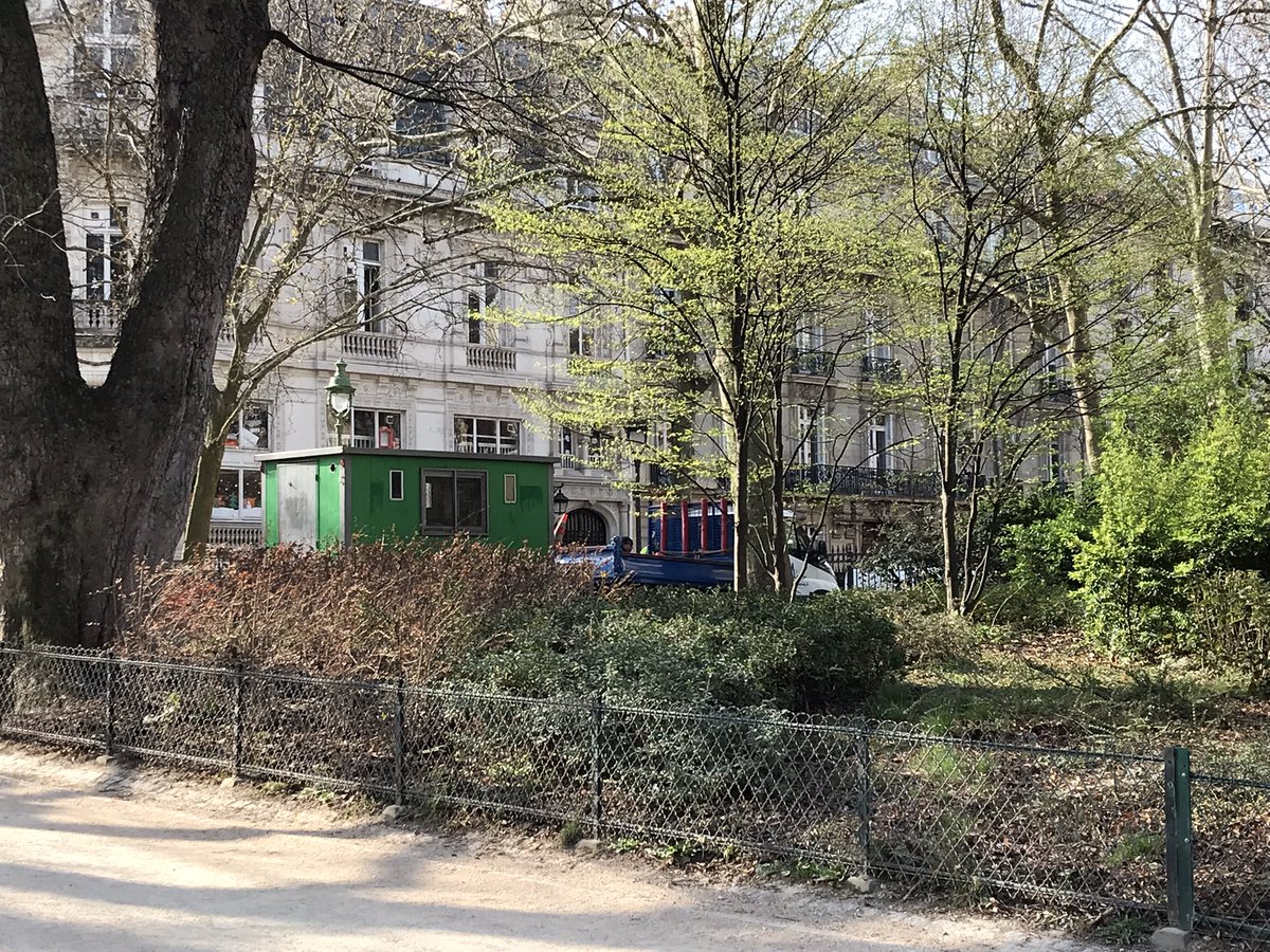 Ensuite on a masqué la perspective sublime de l’avenue Hoche et de l’arc de triomphe à travers les majestueuses grilles Davioud par un container rouge qui donne un petit air de port industriel