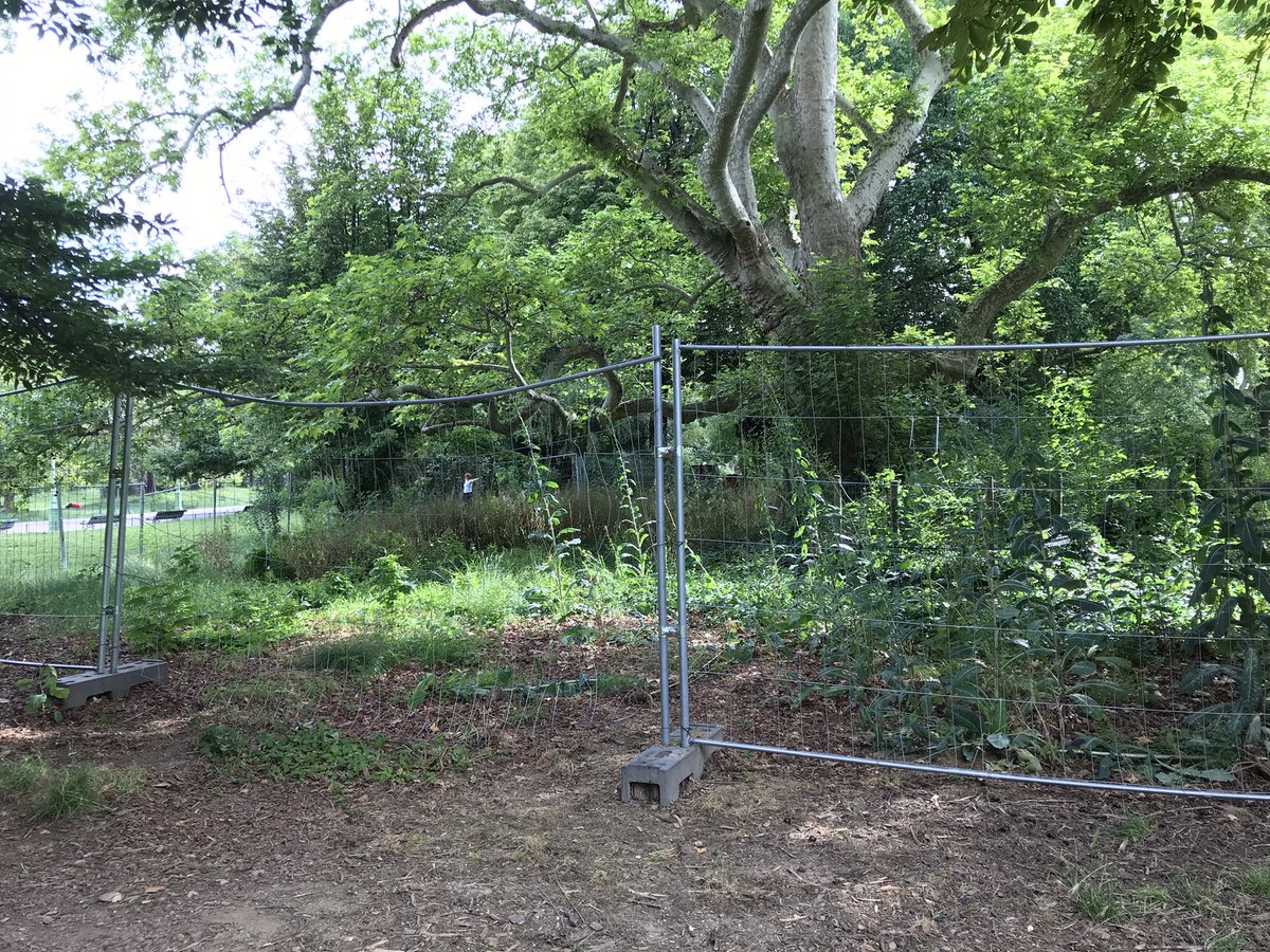 Organisé une friche délirante au milieu de barrières défoncees autour de l’arbre remarquable du parc