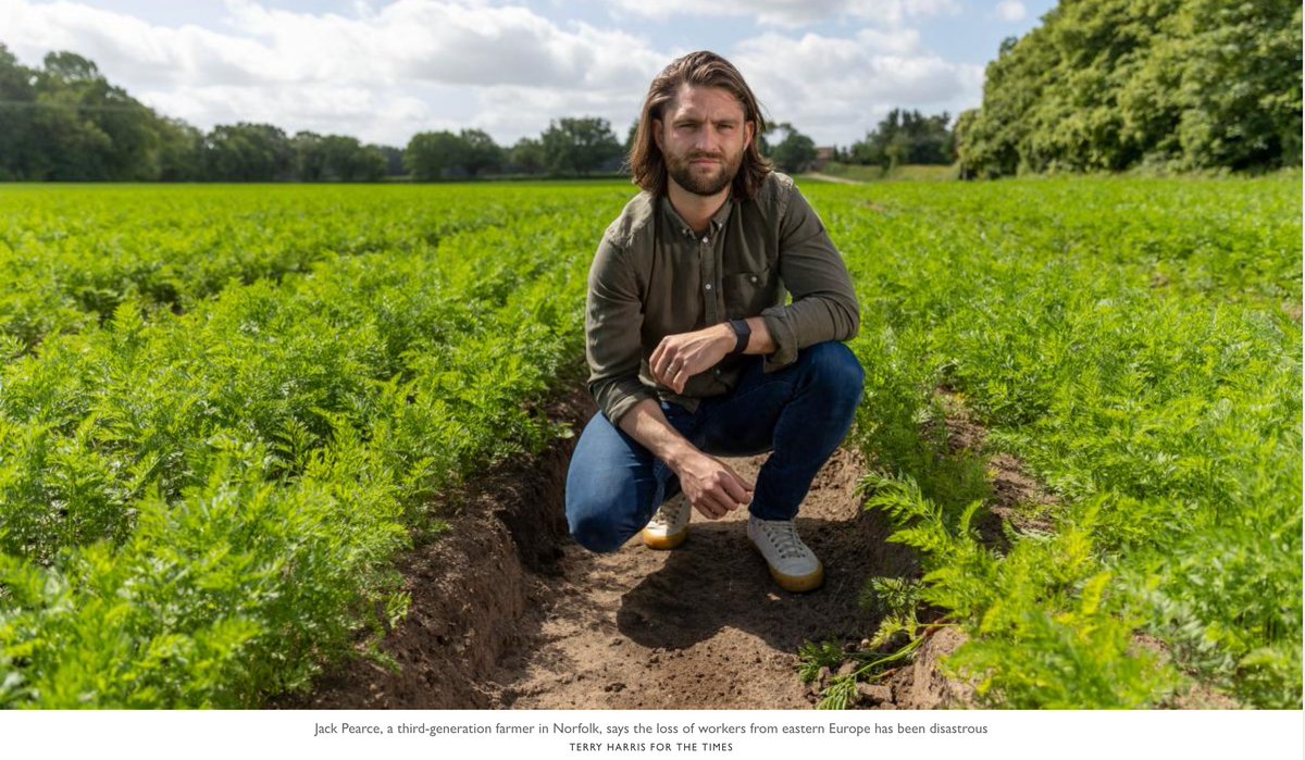 6. "Without the same numbers of Romanians, Poles and Lithuanians ... and the Ukrainians who made up a significant portion of seasonal workers last year, [Jack Pearce, a 3rd-generation farmer in Norfolk] has had no choice but to let about £75,000 of his produce rot". #Brexit