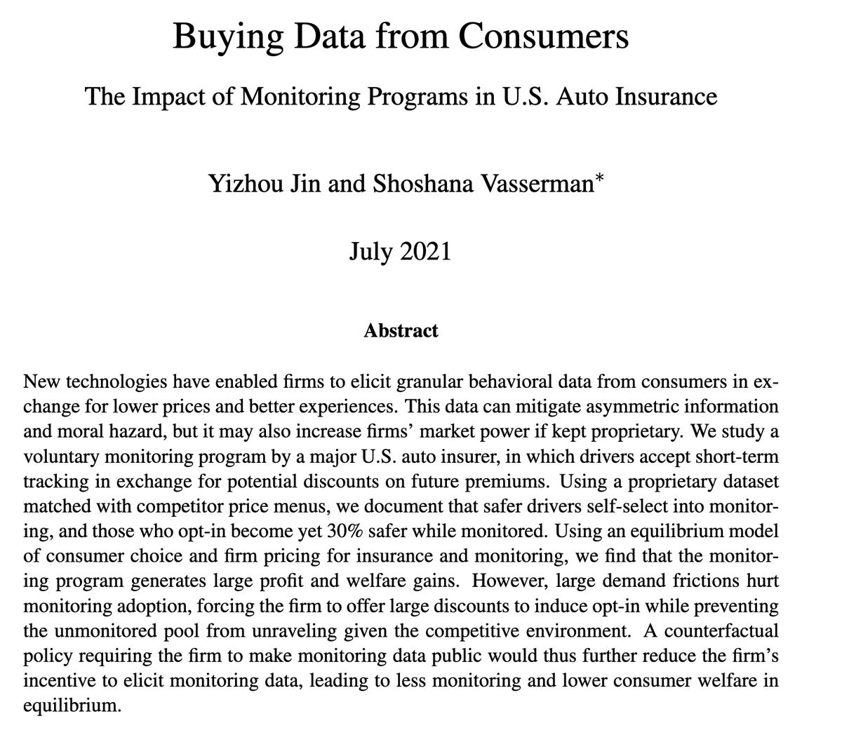 Policy debates re privacy on the internet often stress these trade-offs: 1) Firms getting user data -> better matches + service to larger market 👍 2) But lack of privacy is icky 👎 3) And facilitates "too much" price discrimination 👎