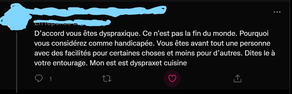 Pour poser le contexte, j'ai reçu ce message suite à un fil de tweets dans lequel je dénonçais l'infantilisation subie dans ma famille proche, à cause de mon handicap. Commençons par dire quelque chose d'important : Je SAIS que ce message se voulait bienveillant.