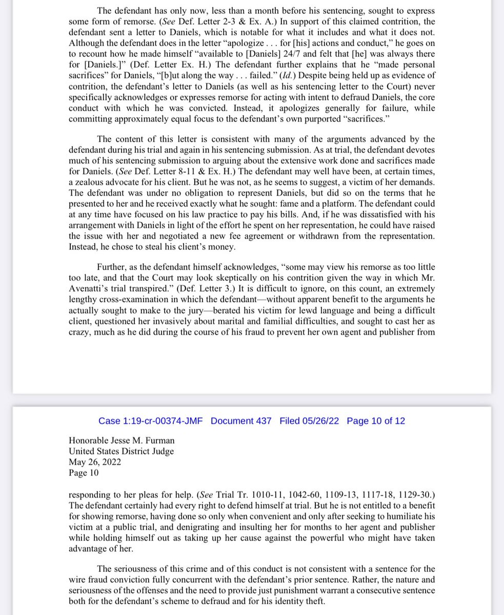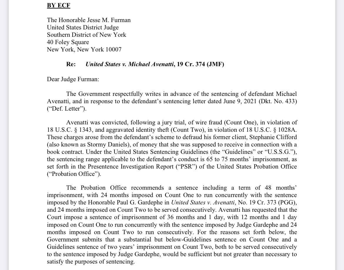Here’s the full 64-page filing, which includes the transcript from Avenatti’s June 2 sentencing in the @StormyDaniels case. bit.ly/3HjpVNf