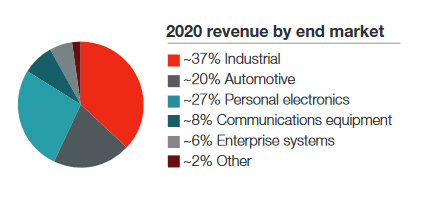 TI structures its business into 6 segments, with Industrial and automotive being the largest part...Yes, their famous calculators are in that small 2% Other category.