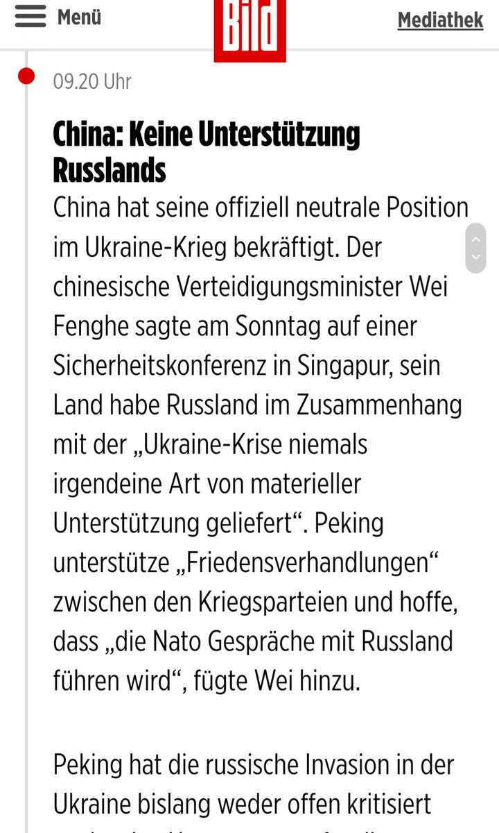 das bedeutet jetzt zwar, dass sich China zurückhält und es keine Waffenlieferungen oder gar Einmischungen zugunsten Russlands gibt, allerdings sind wir im Westen im Prinzip abhängig von China als Lieferant - haben wir sehr drastisch in der Pandemie gemerkt und merken wir 3/x