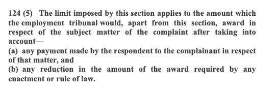 5/ Instinctively this may seem unfair (at least once the unfairness to a claimant of a statutory cap below what they have actually lost is neutralised). The EAT expressed some sympathy with the respondent on this but was clear that it was the consequence of s.124(5)'s wording.