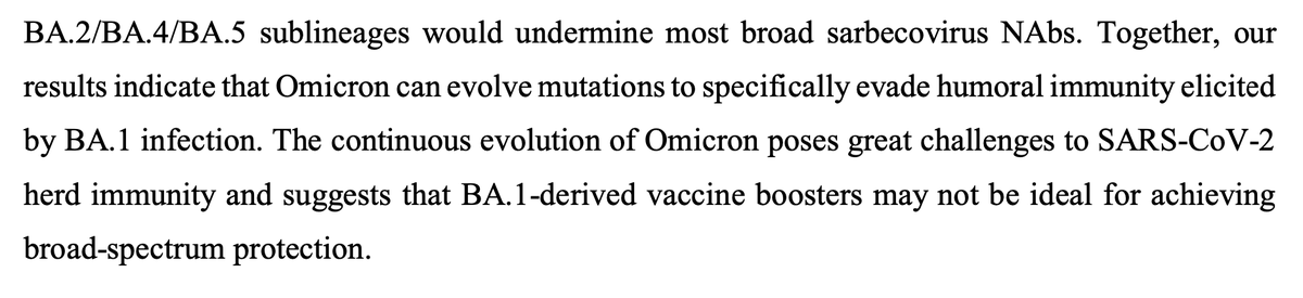 1/ Extrem wichtige Studie zu BA.4, BA.5 sowie weiteren Sublinien. Einige Punkte: Neue Linien haben sich durchgesetzt da sie BA.1 induzierter Immunität ausweichen. Das bedeutet: