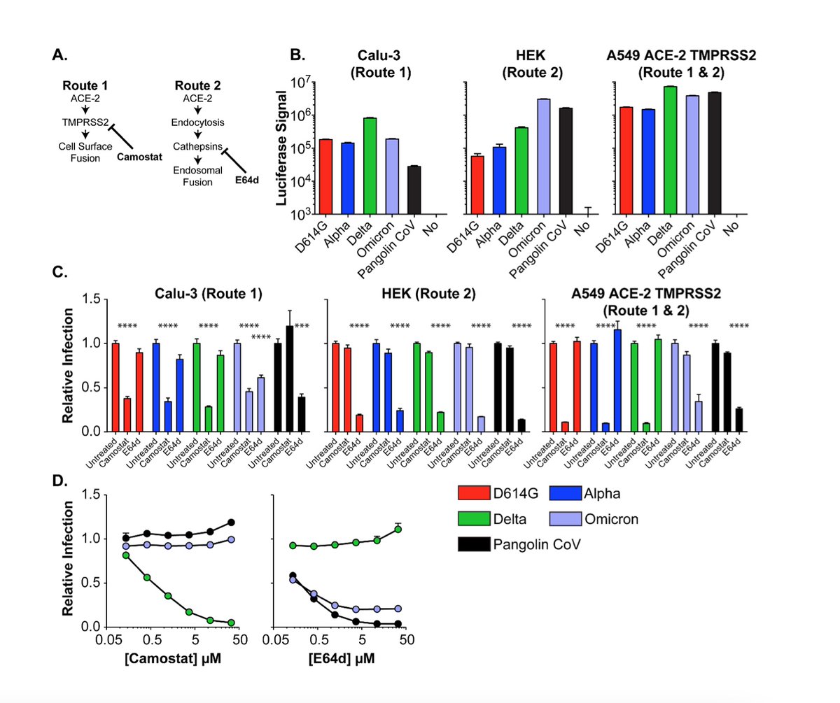 3/ Dies hat sich nach gerade veröffentlichten Untersuchungen bei BA.5 wieder umgedreht und statt endosomaler Fusion steht wieder der ACE2+TMPRSS2 vermittelte Eintrittsweg im Vordergrund, der sehr wahrscheinlich u.a. zu stärkerem Lungenbefall führt.