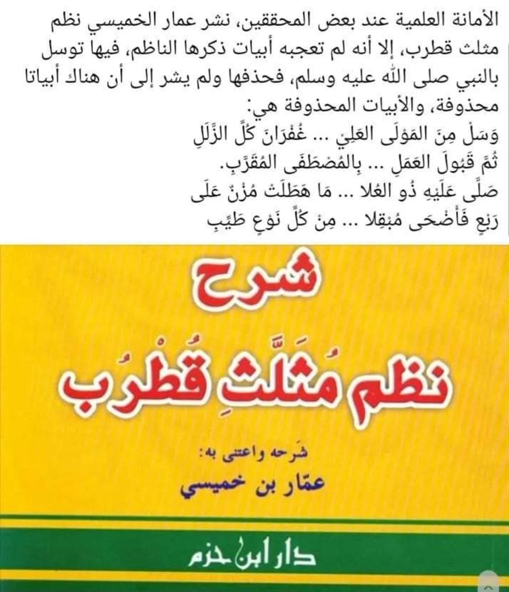 #فضيحة أخرى تتمثل في التلاعب و تحريف متن #نظم_الٱجرومية للعلامة الشيخ عبيد ربه محمد محمد بن اب الشنقيطي فقد قام المحقق بالتصرف في النظم و تغيير كلمات لم تعجبه فيه و قد اعترف المحقق بذلك و الغريب أنه يسمي ذلك إصلاحا بدل أن يسميه تحريفا