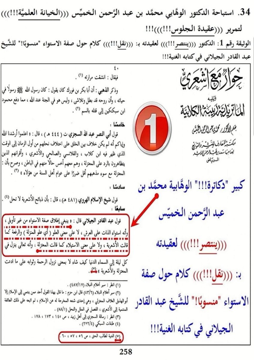 استباحة الدكتور الوهابي محمد الخميس الكذب على الامام عبدالقادر الجيلاني من أجل تمرير عقيدة الجلوس