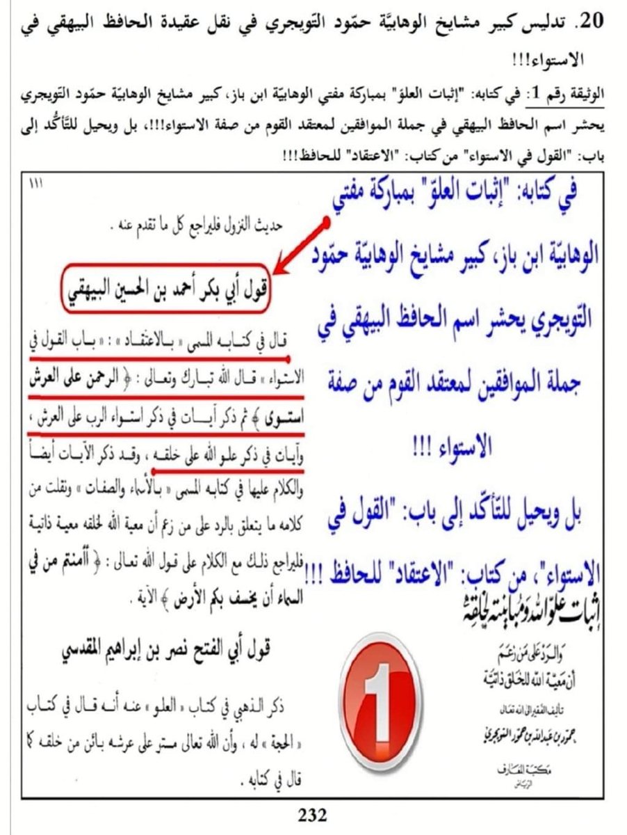 [22] تدليس #الوهابي حمود التويجري في نقل عقيدة الحافظ #البيهقي في الاستواء