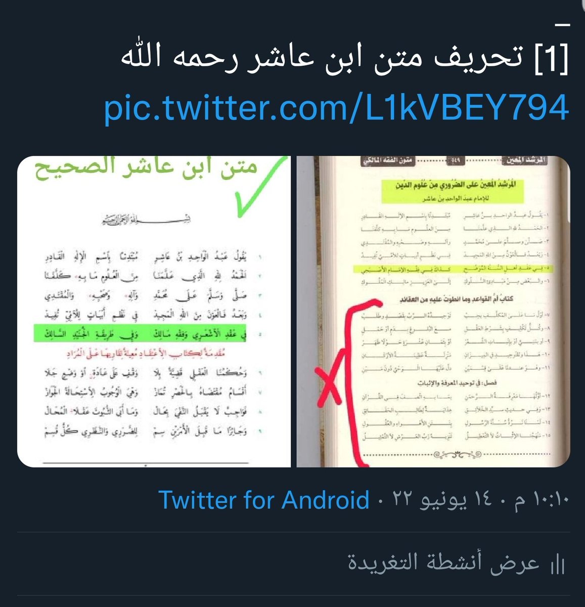 [1] تحريف متن ابن عاشر رحمه الله