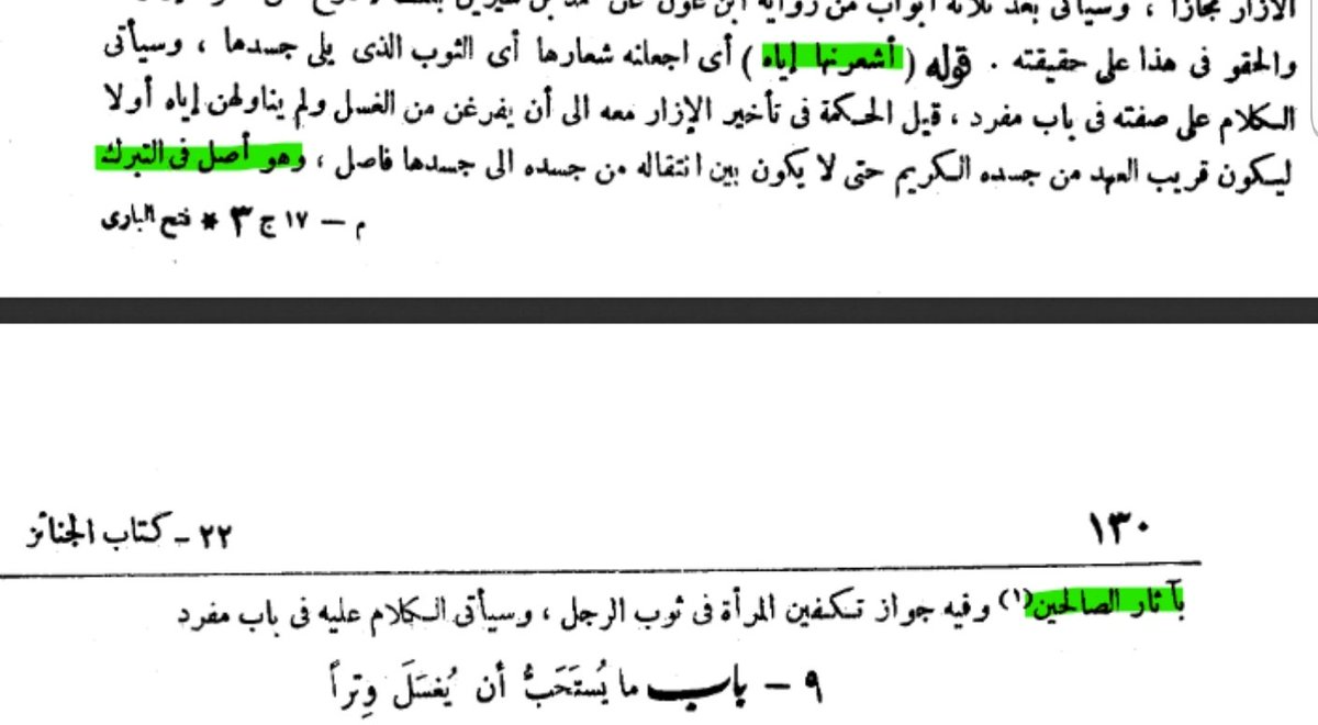 لم يستدل شيخ الاسلام ابن حجر بالحديث فحسب بل جعل الحافظٌُ الحديث الصحيح اصلا في التبرك بآثار الصالحين