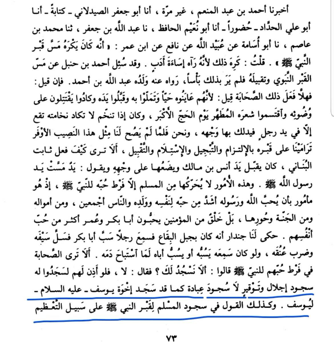 تم حذف(عبادة كما قد سجد أخوة يوسف عليه السلام ليوسف)لانها تهدم مذهبهم في تكفير المسلم الجاهل الذي يسجد للقبر