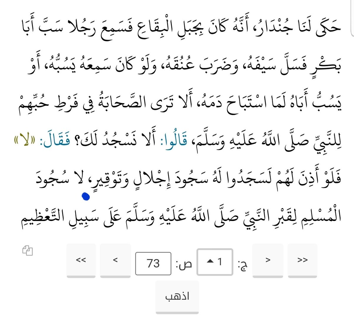 وهو قول الذهبي:وكذلك القول في سجود المسلم لقبر النبي ﷺ على سبيل التعظيم والتبجيل لا يكفر به أصلا،بل يكون عاصيا...