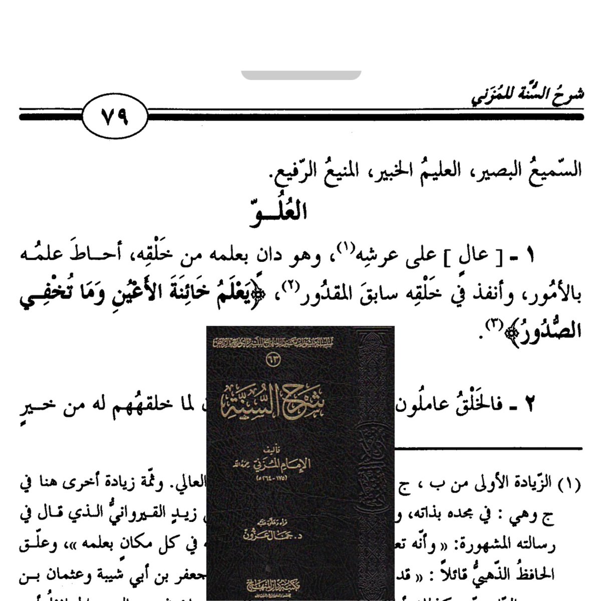1️⃣ كلام الإمام المزني:عالٍ على عرشه وهو دانٍ بعلمه من خَلقِه ،أحاط علمه بالأمور ،وأنفذ في خلقه سابق المقدور.