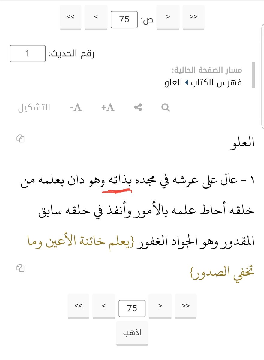 2️⃣ تحريف الشاملة:عال على عرشه في مجده [بذاته] وهو دان بعلمه من خلقه أحاط علمه بالأمور وأنفذ في خلقه سابق المقدور