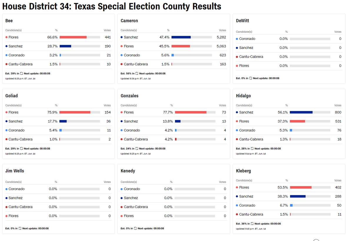 I mean, Cameron County 50-50 with half the vote counted? Obama beat Romney here by 30 points. He won Willacy County by 40 (which is also tied right now). I mean later votes will probably shift things but the fact that this is even close in a congressional race . . .