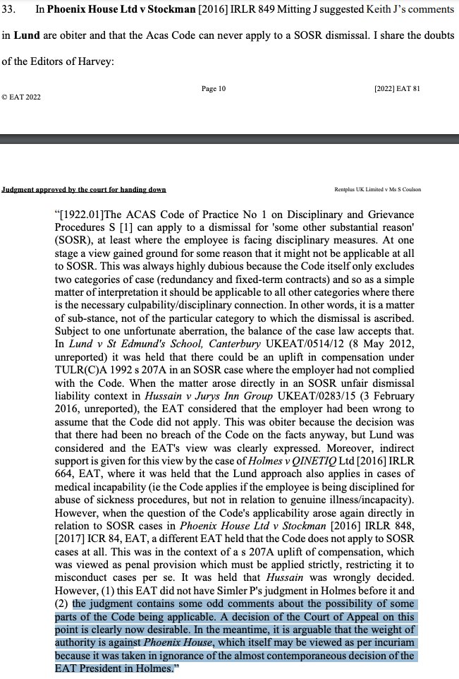 1/ The EAT's judgment in Rodgers v Leeds Laser Cutting has been handed down, but hasn't yet reached the National Archives or EAT website, & I'm not technically proficient enough to upload a copy. Which means you'll have to take my word about what it says! #ukemplaw