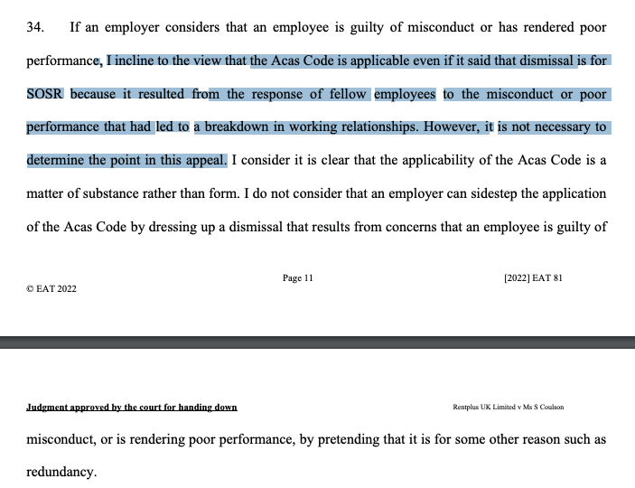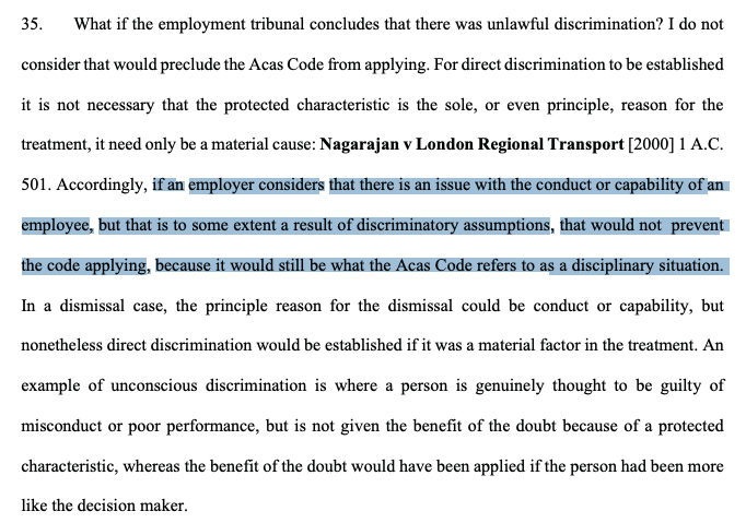 4/ 2ndly, a clear statement that in order to get an uplift for breach of the ACAS disciplinary process, it isn't necessary that misconduct or poor performance is found, merely that there's an issue of misconduct/poor performance the employer considers it must address.
