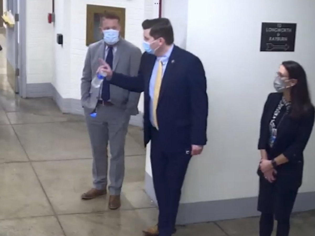 Anyone know who is the seeming member of Congress in blue suit top right holding his staff back so the man on Loudermilk tour can take a photo of the hallway area? clear that there were a lot of people who saw a tour that GOP has lied about for over a year