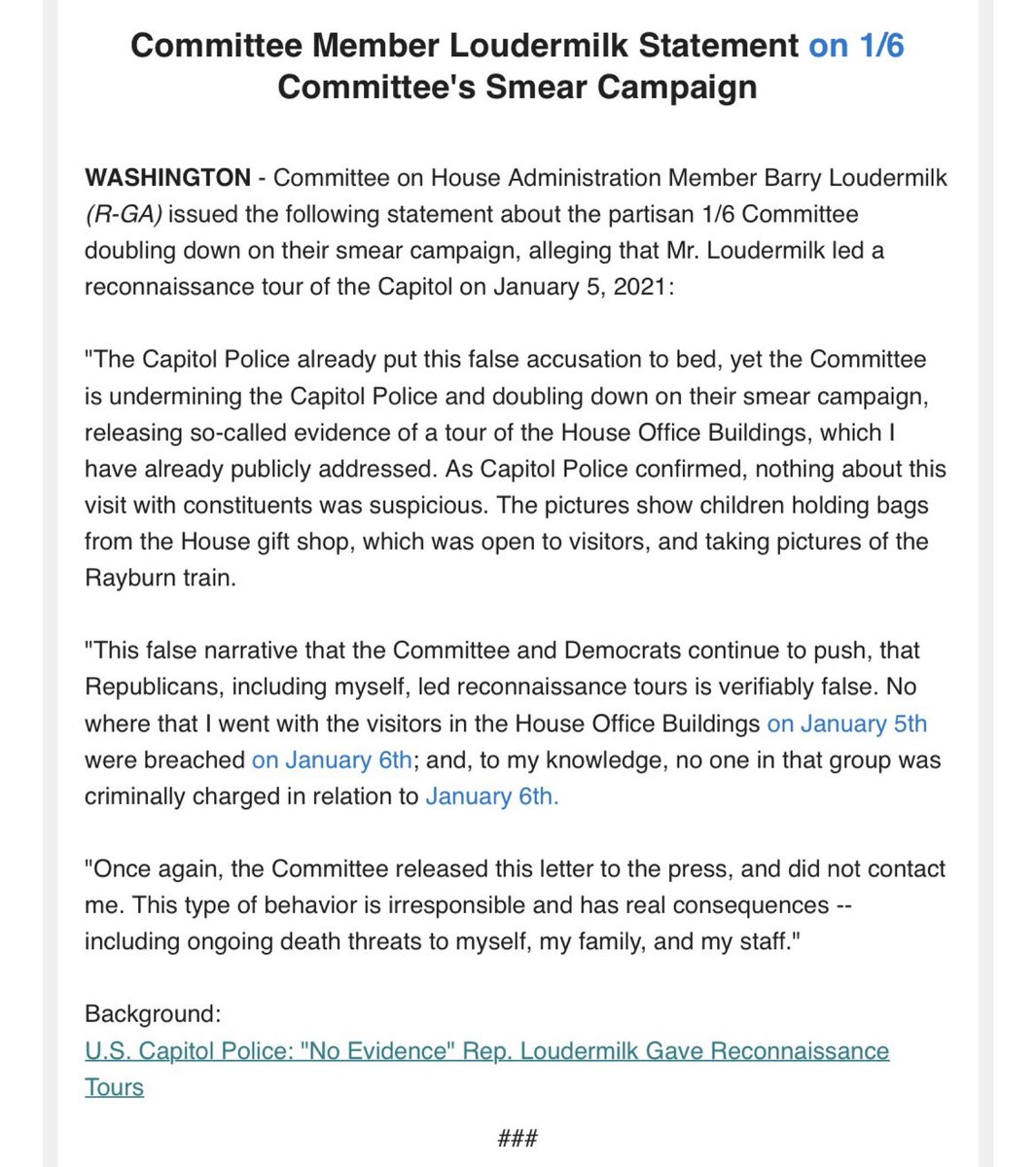 Has anyone seen a statement from @RepLoudermilk explaining his false statements?
