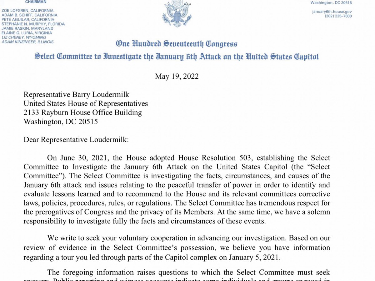 Here is a previous letter from J6 Select Committee dated May 19, 2022 addressed to Loudermilk asking for Loudermilk’s voluntary cooperation. january6th.house.gov/sites/democrat…