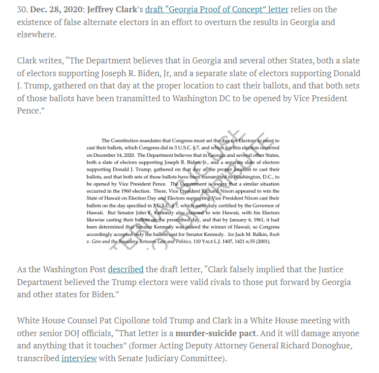 6. What has also not received sufficient attention is how the Trump-Meadows-Clark effort to use the Justice Department to overturn the election relied on the false alternate slate of electors scheme.