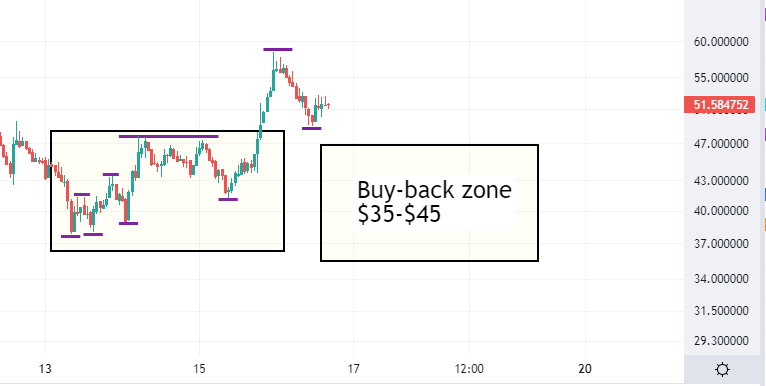 12/ For those waiting to buy lower, this green box should be a key level to raise your expectations to in the event of further downside. The bottom of this channel may likely become a region for double-bottom (between $35-$40).