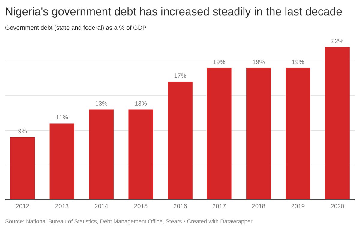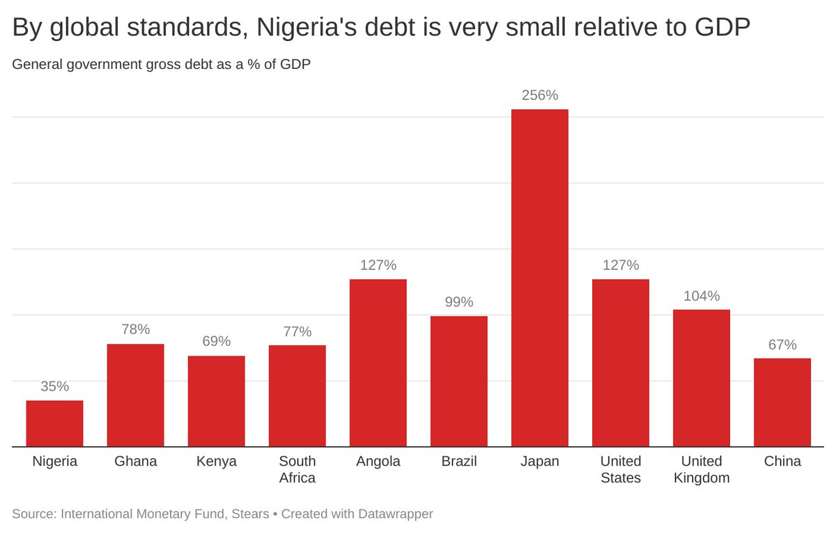 Nigeria’s current debt to GDP ratio is currently 22%, far less than the @IMFNews's recommendation of 35%, and much less than international counterparts.