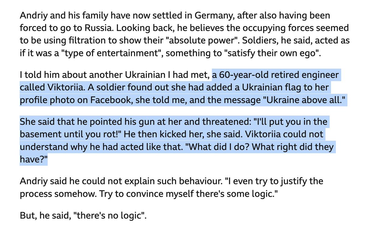 "They separate families. People are being disappeared. It's pure terror"—#Mariupol🇺🇦 survivor on #Russia's "filtration" camps