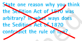 The above section (deleted from the Class 8 pol sc book) also carried the following exercise for students: "State one reason why you think the Sedition Act of 1870 was arbitrary? In what ways does the Sedition Act of 1870 contradict the rule of law?"